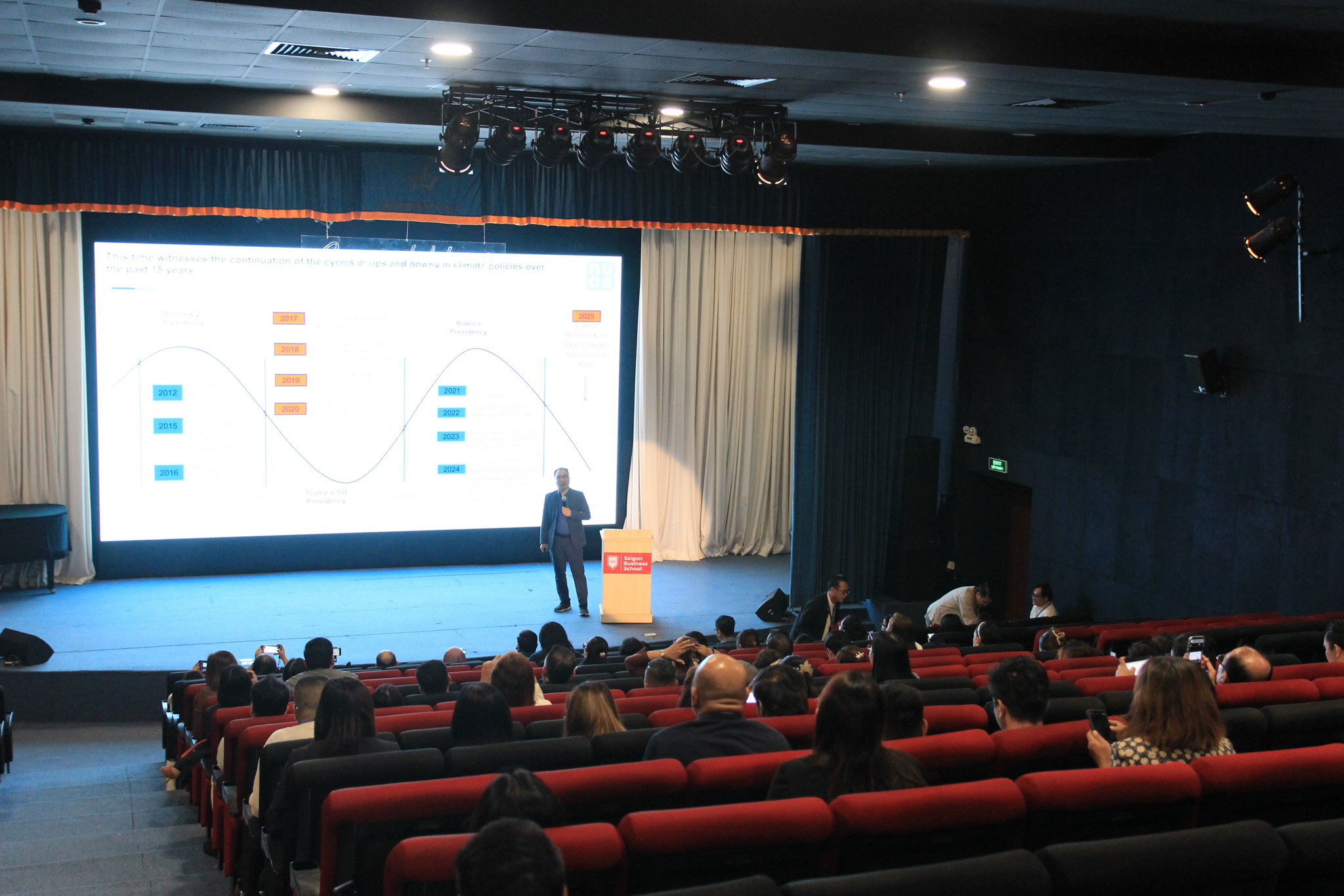 Mr. Hieu Dinh, CEO & Founder of NUOA.IO, delivered an insightful presentation on the application of technology in carbon emission management, an essential field in sustainable R&D, drawing strong interest from conference attendees.